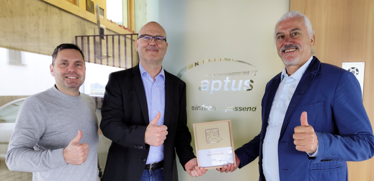 Die aptus IT GmbH wurde als Goldpartner der CAS Software AG ernannt. Diese Auszeichnung markiert einen neuen Abschnitt in unserer langjährigen Partnerschaft mit der CAS. Zur Übergabe war Dirk Ramthun, Business Development Manager des CAS Partner Managements, persönlich vor Ort in unserem Firmensitz in Backnang. Dort überreichte er unserem Geschäftsführer Reinhard Mayer und dem Bereichsleiter […]